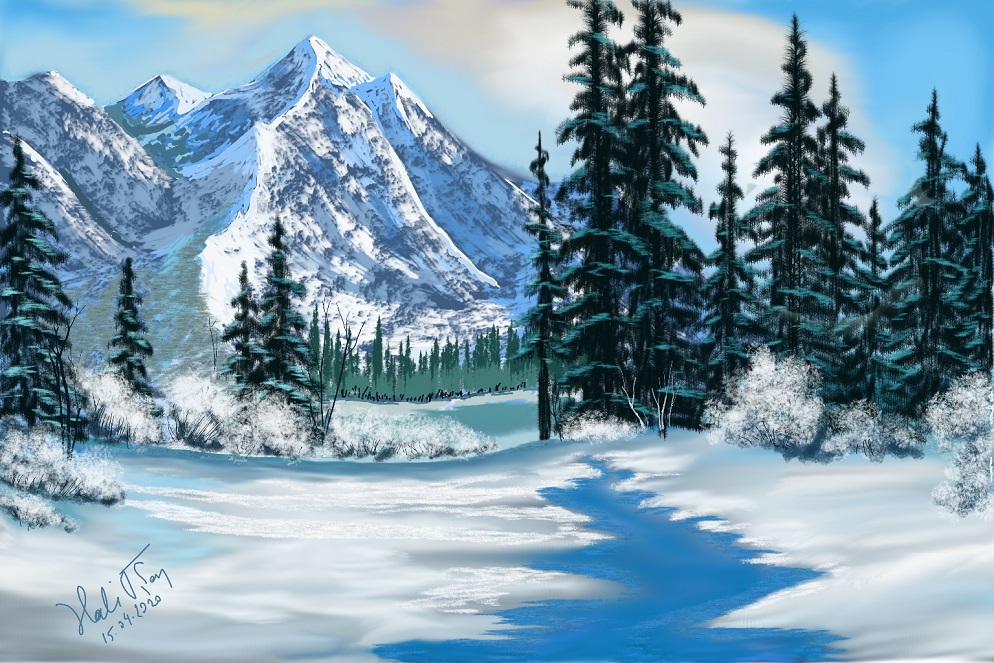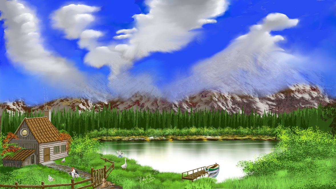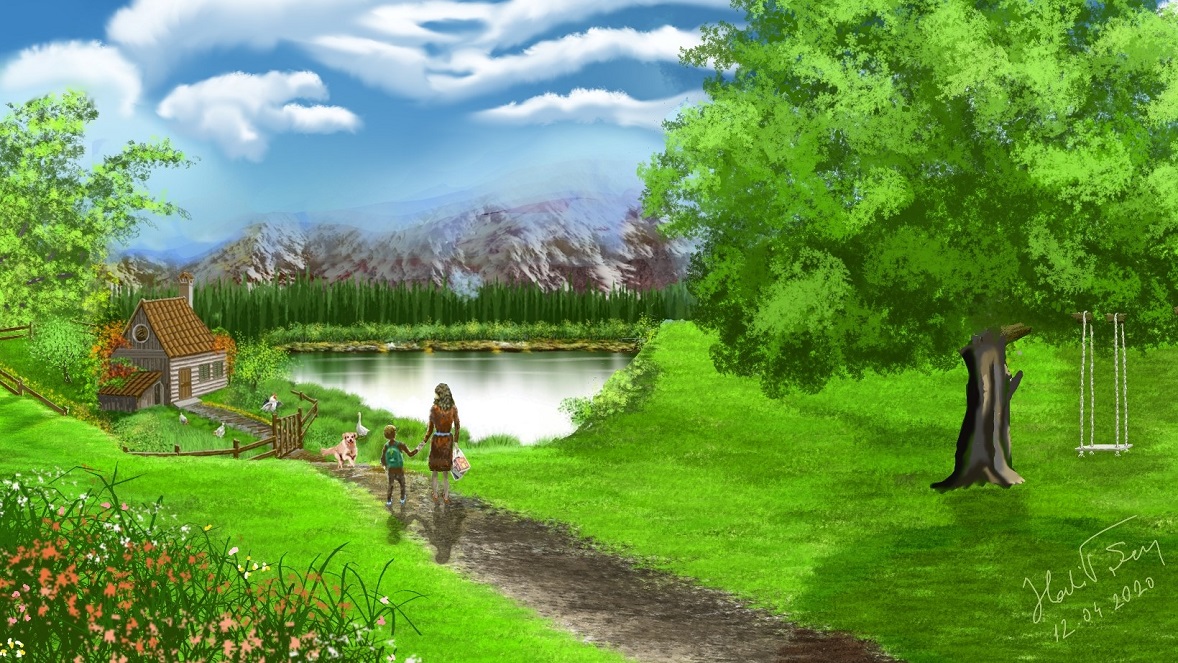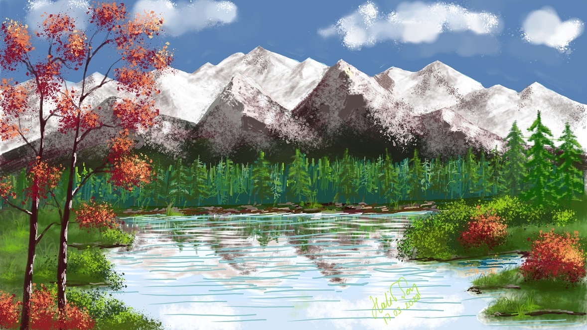 Arka plandaki en uzak nesnelerden başlayarak bir manzara resmi oluşturmak ve daha yakın nesneleri adım adım boyamak çok mantıklıdır.